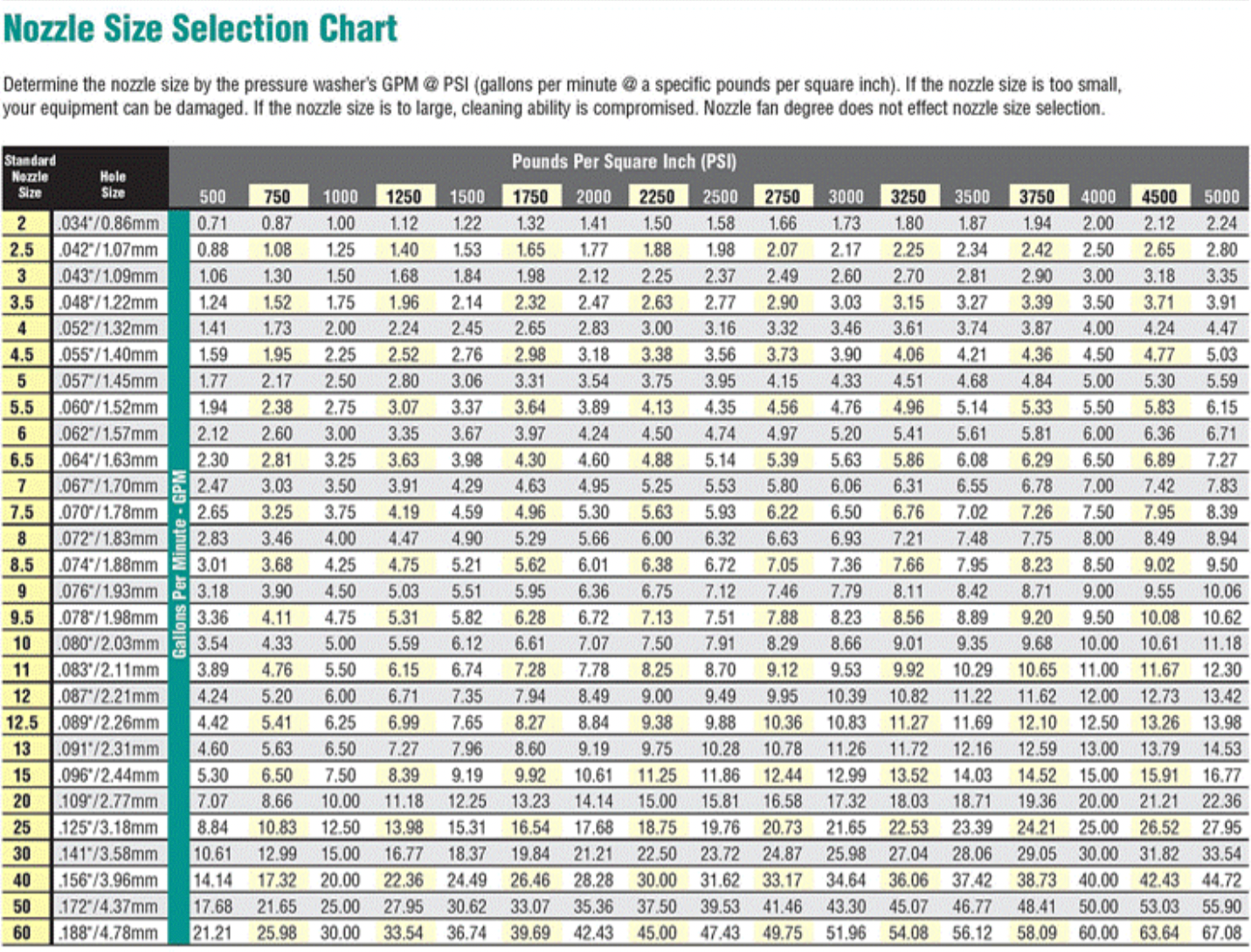 **Each longcast lance is specific to your machines specifications. Please refer to orifice chart for nozzle size in MM and round up to nearest orifice option. For example, 4000 PSI at 4GPM requires a 1.32MM orifice and would be rounded up for a 1.5 MM orifice option. Any questions please CONTACT US **